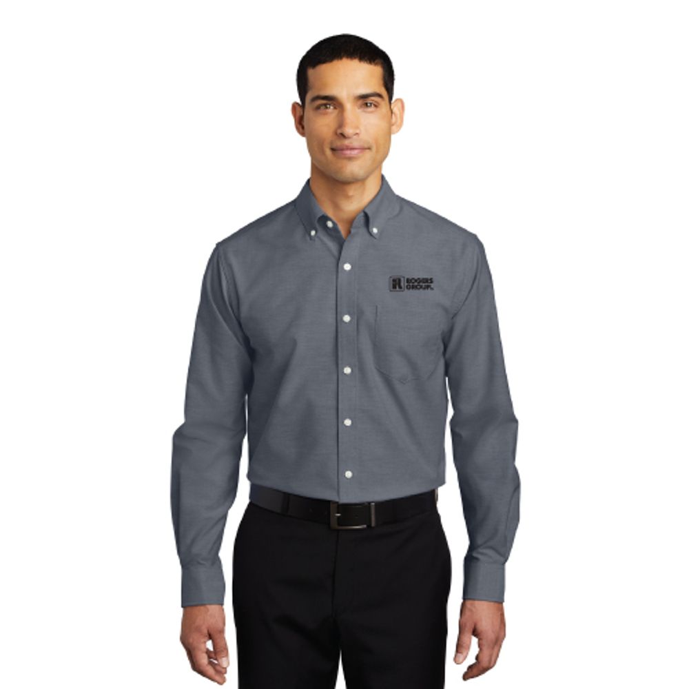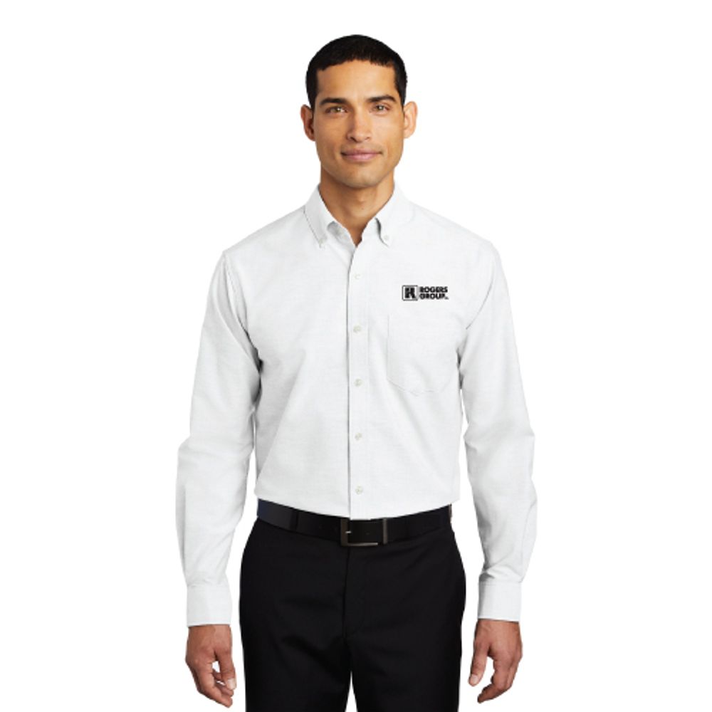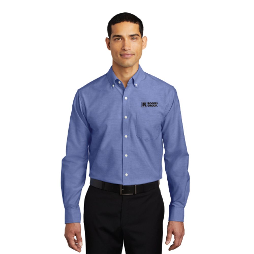 Look your best in a tried-and-true oxford that performs. Designed to release stains, our wrinkle-resistant SuperPro Oxford has a soft hand to keep you looking neat and professional all day long.. 4.6-ounce, 60/40 cotton/poly. Back shoulder pleats. Button-down collar. Left chest pocket. Rounded adjustable cuffs.